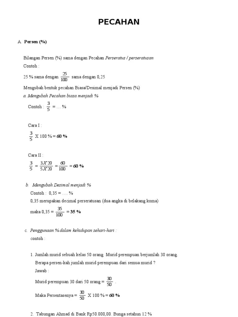 Untuk mengubah sebuah bentuk desimal ke persen ataupun sebaliknya, maka langkah pertama adalah ubah dulu ke dalam bentuk pecahan.