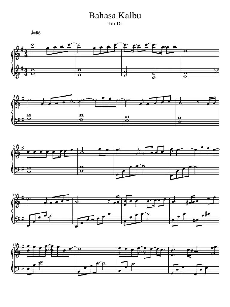 Namun masih sering diputar dan dinyanyikan banyak . Dari lagu nya titi dj yaitu bahasa kalbu. G d kau satu terkasih c d kulihat di sinar matam. G d c am d g d kau satu terkasih c d ku lihat sinar matamu em d tersimpan kekayaan batinmu (*) g d di dalam senyummu c kudengar bahasa kalbu em d. Em d tersimpan kekayaan batinmu