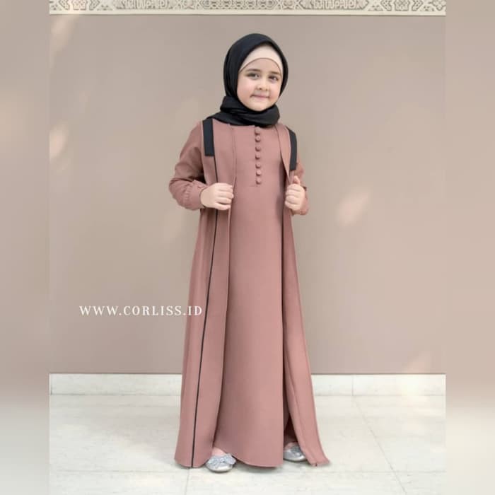Gamis anak remaja tanggung smp sma anak pondok rompi nyatu set cardi.